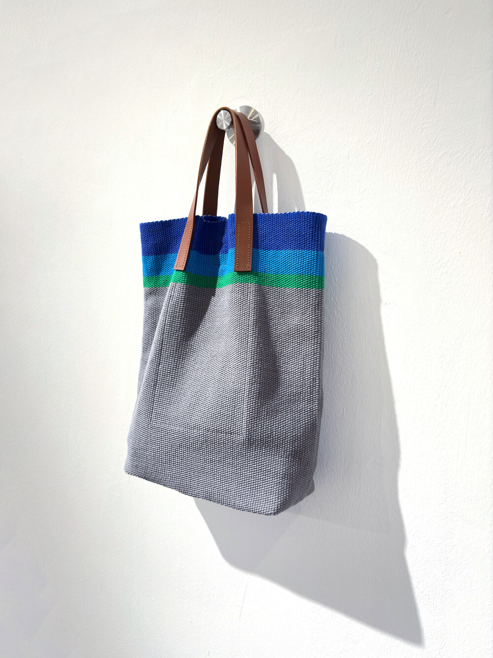 100% 핸드위빙으로 짜여진 토트백입니다. 자석 잠금과 내부 포켓이 있습니다.