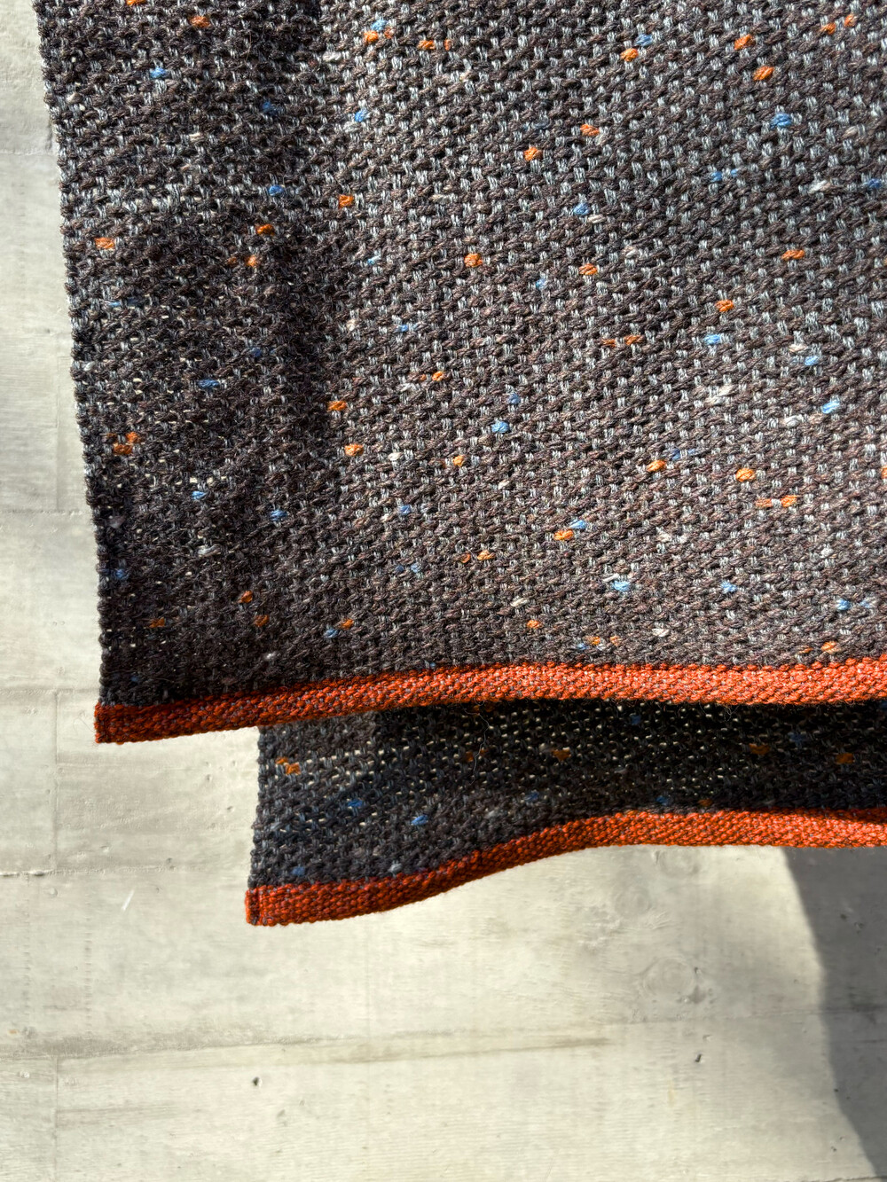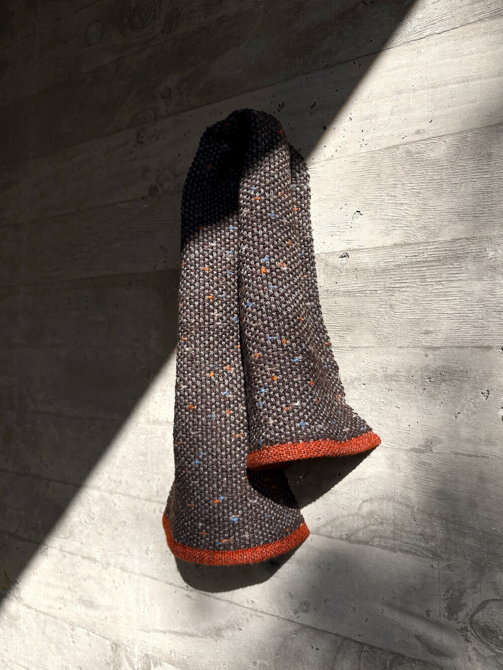 울과 알파카를 직조한 짧은 머플러입니다. 베이스는 미묘한 브라운 빛이 느껴집니다. 가볍게 한번만 묶는 스타일을 추천합니다.
