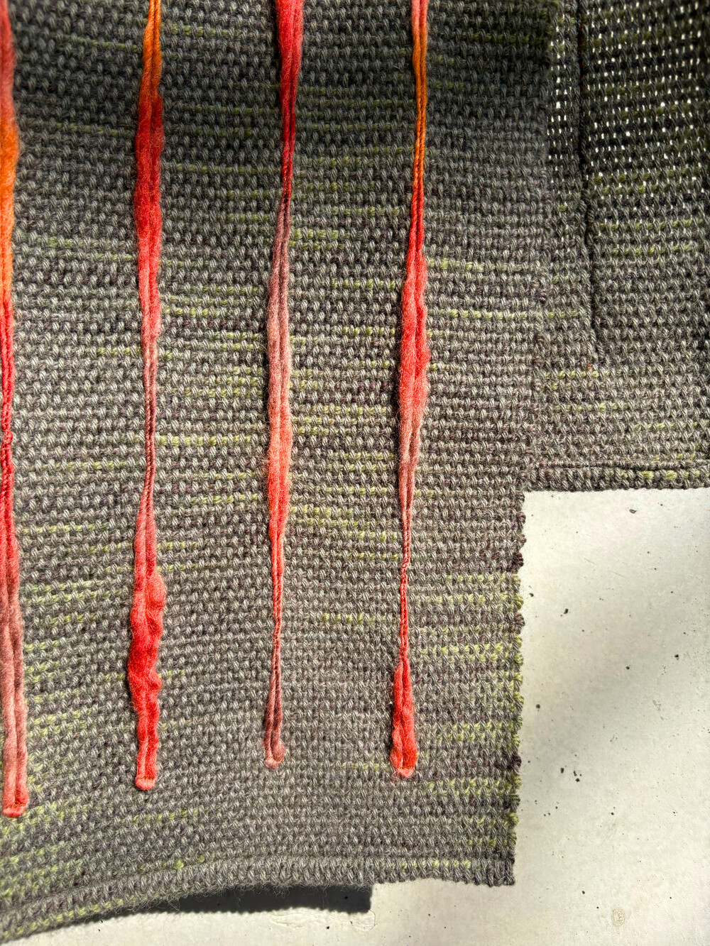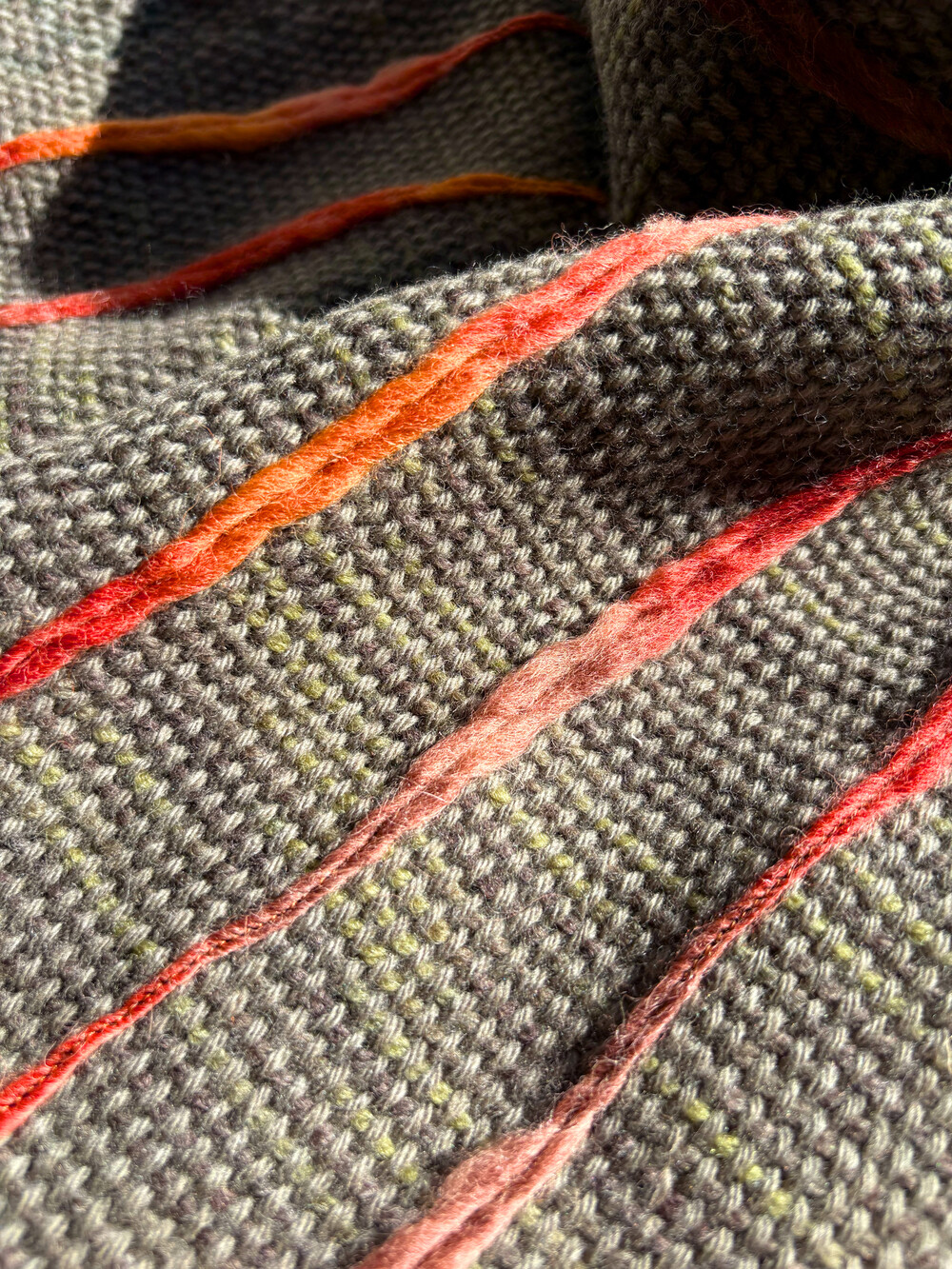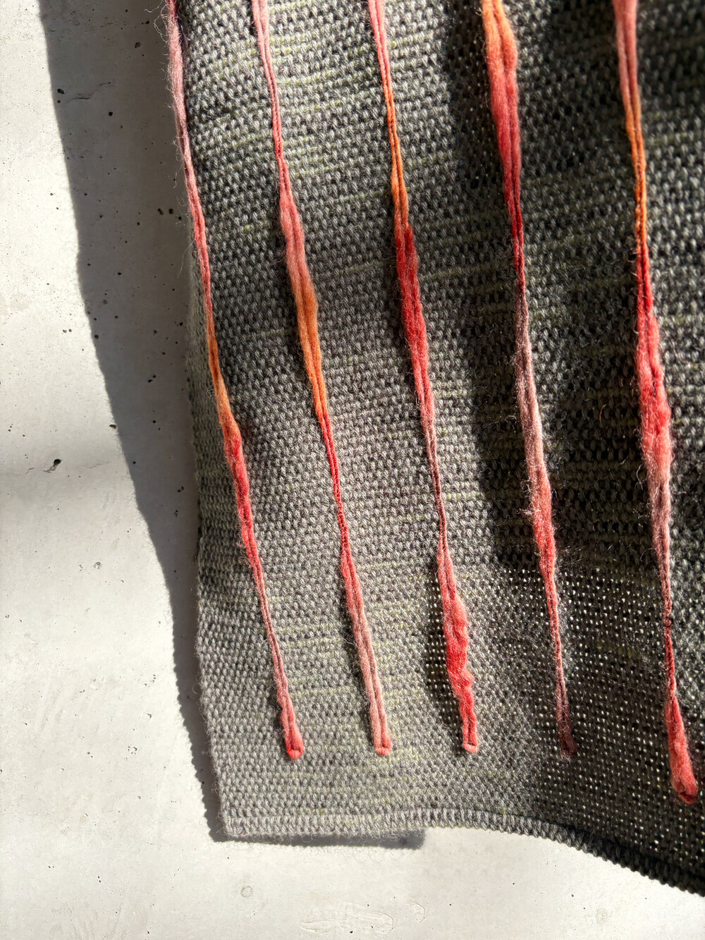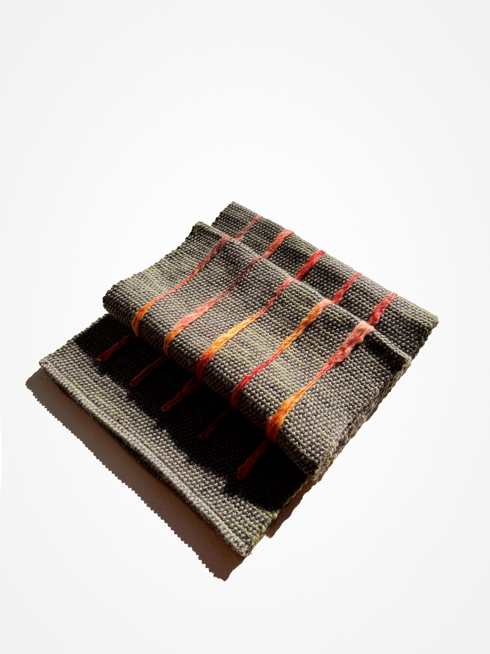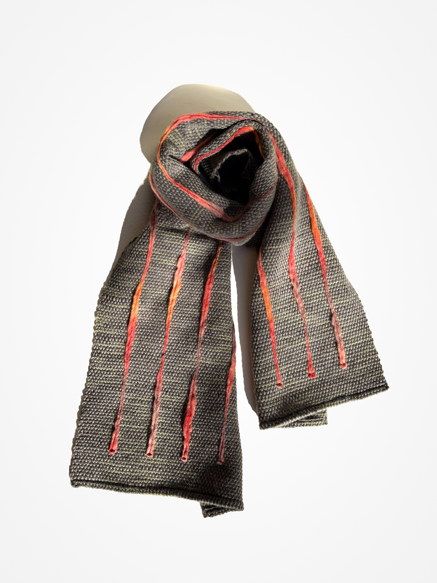 울과 알파카를 직조하여 울 스티치가 포인트로 들어간 긴 머플러입니다. 베이스는 미묘한 초록빛이 느껴집니다. 넉넉한 사이즈로 다양하게 스타일링할 수 있습니다.