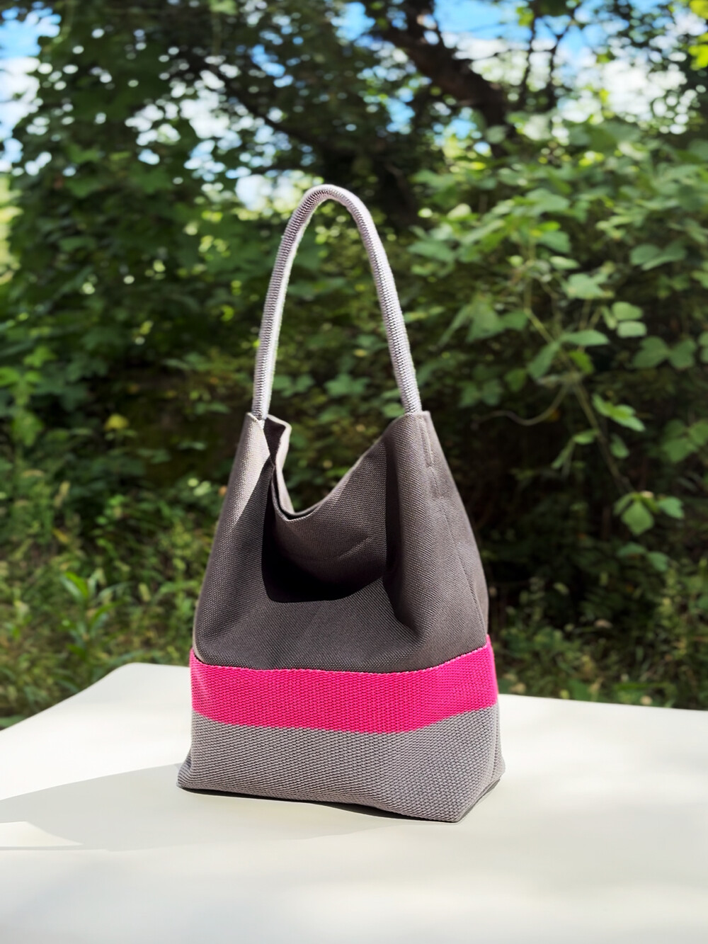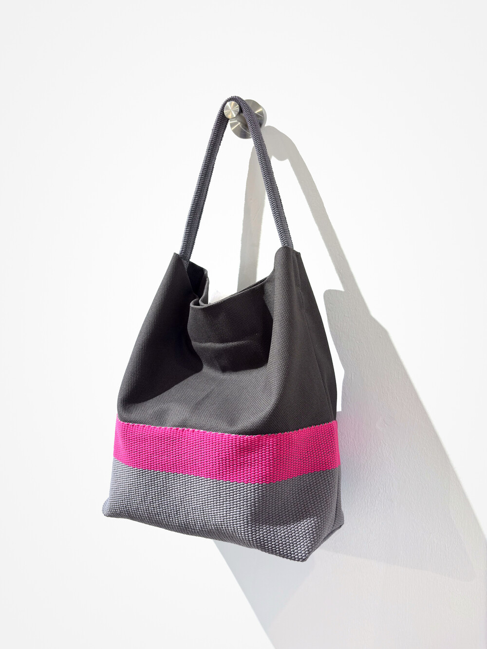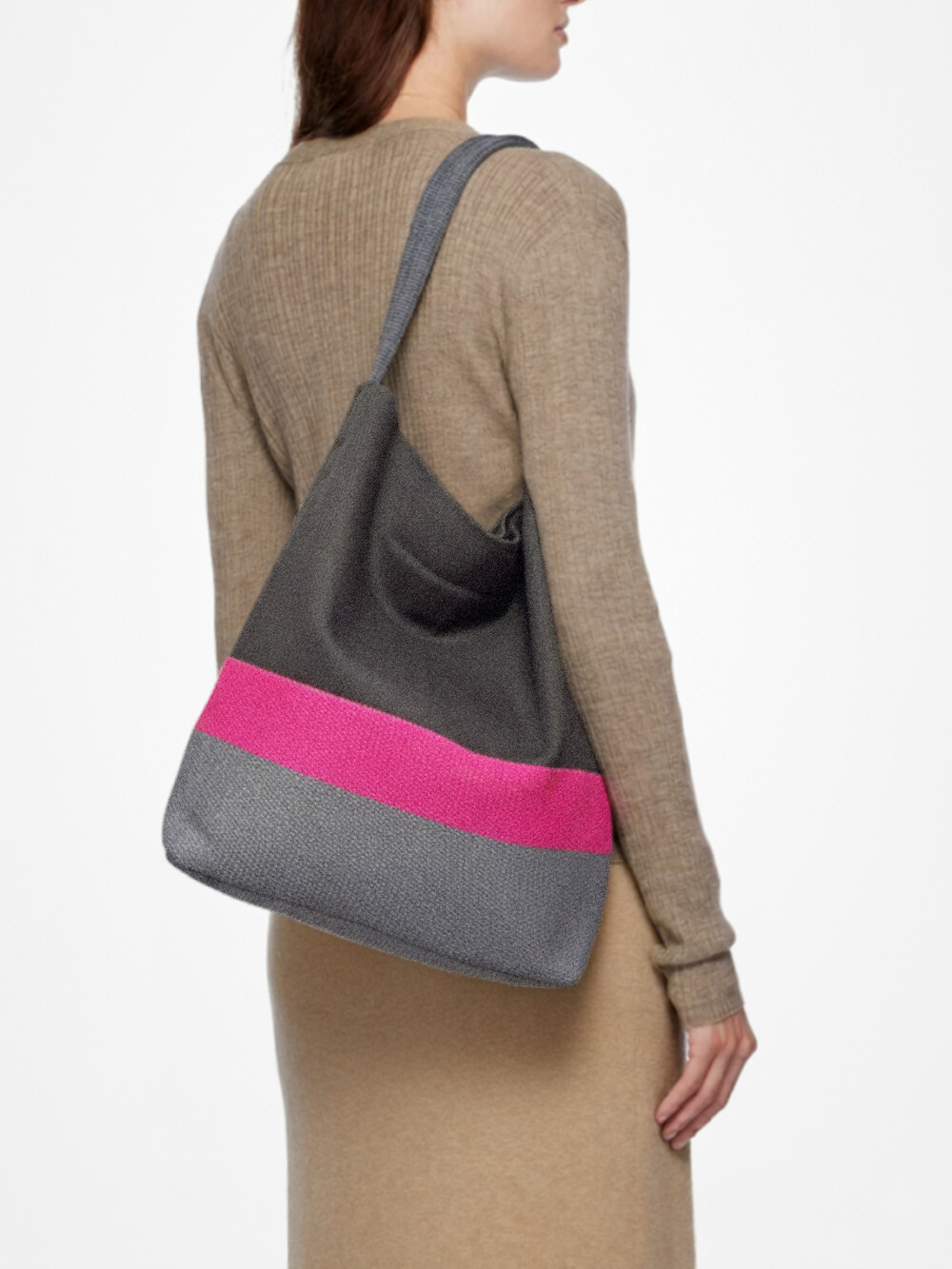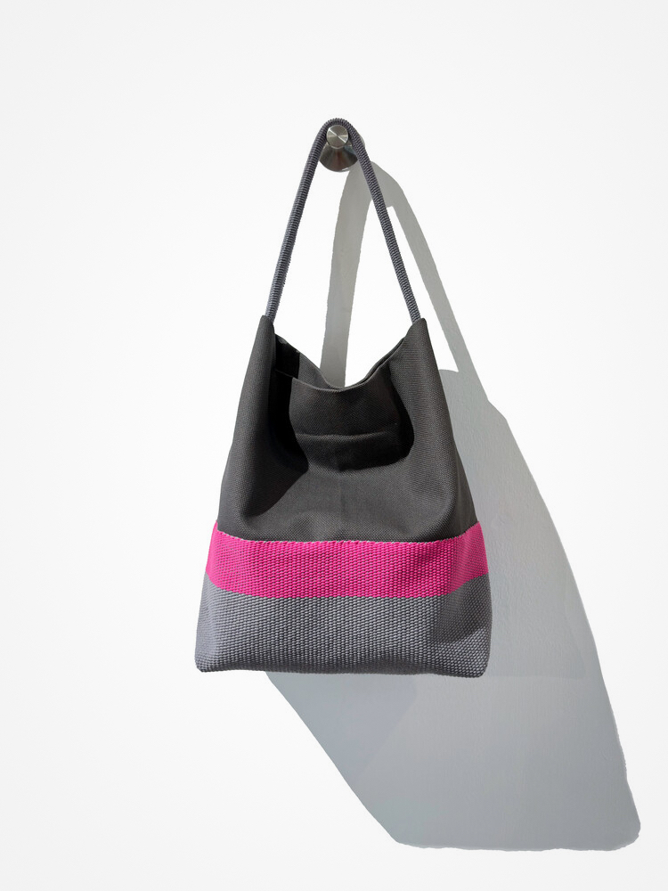 지퍼 포켓과 핸드 우븐 핸들이 추가된 새로운 버전의 숄더백입니다.