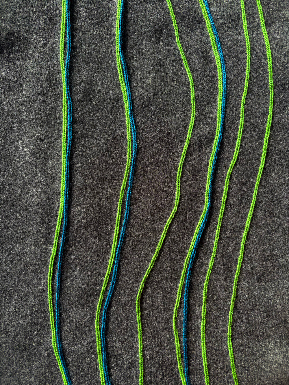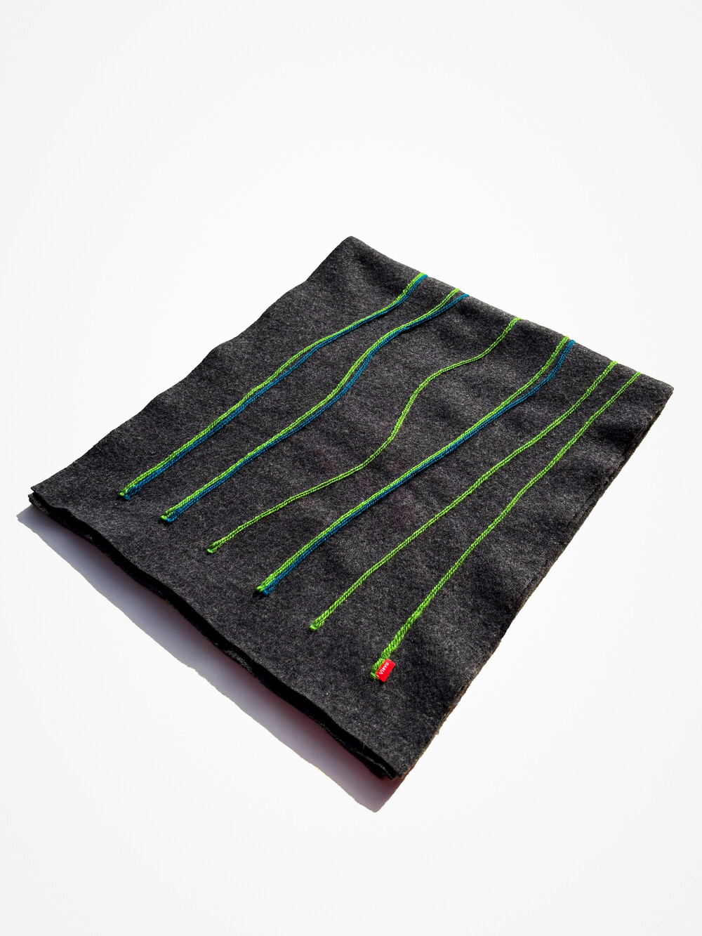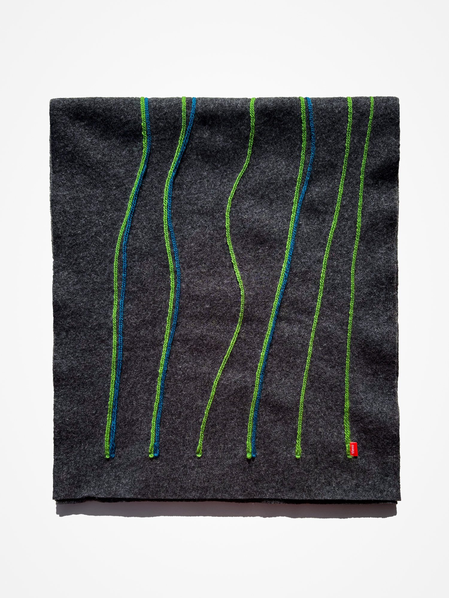 캐시미어와 울로 만든 긴 머플러입니다. 앞면은 라인 스티치, 뒷면은 무지로 다양하게 연출할 수 있습니다. 가볍고 여유있는 사이즈입니다.
