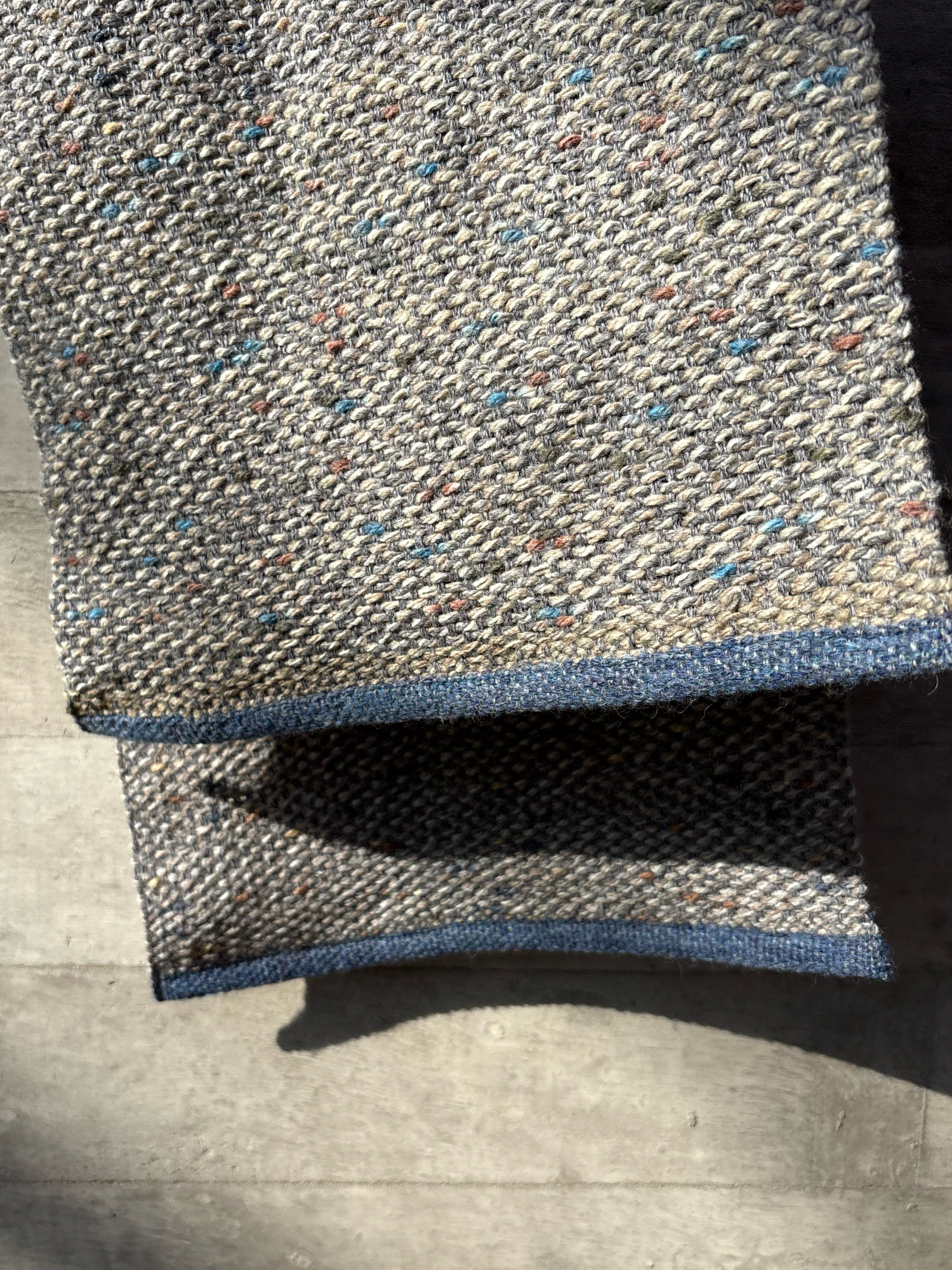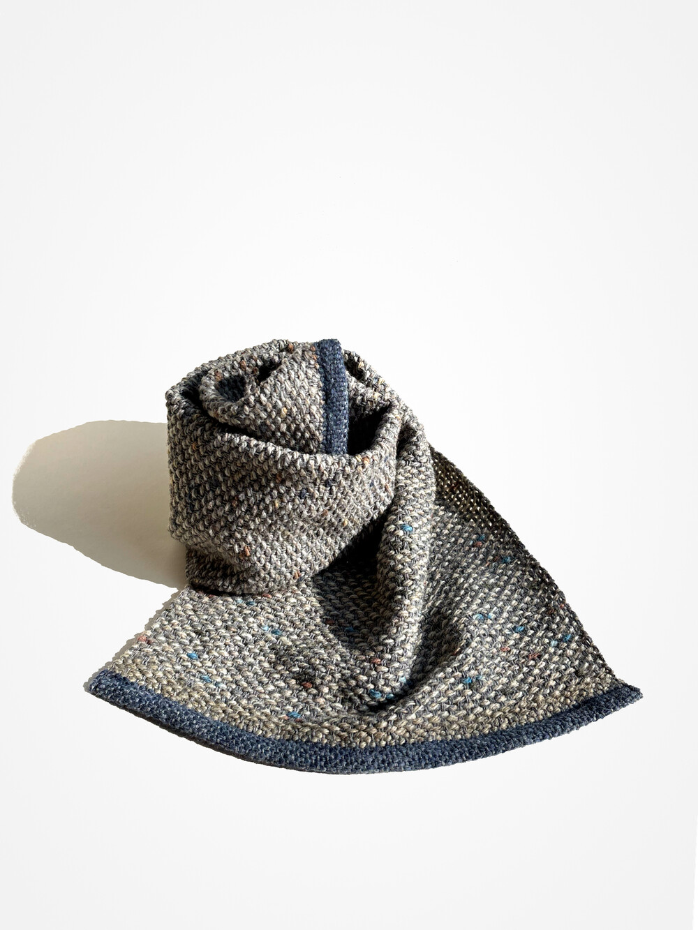 울과 알파카를 직조한 짧은 머플러입니다. 베이스는 실버톤에 도트 포인트가 있습니다. 가볍게 한번만 묶는 스타일을 추천합니다.